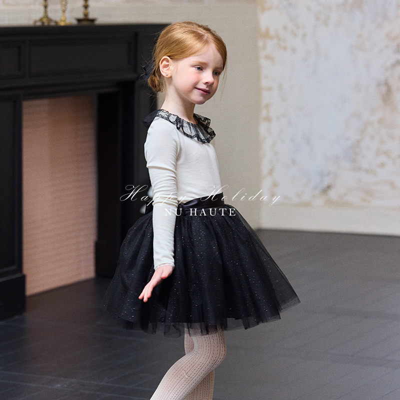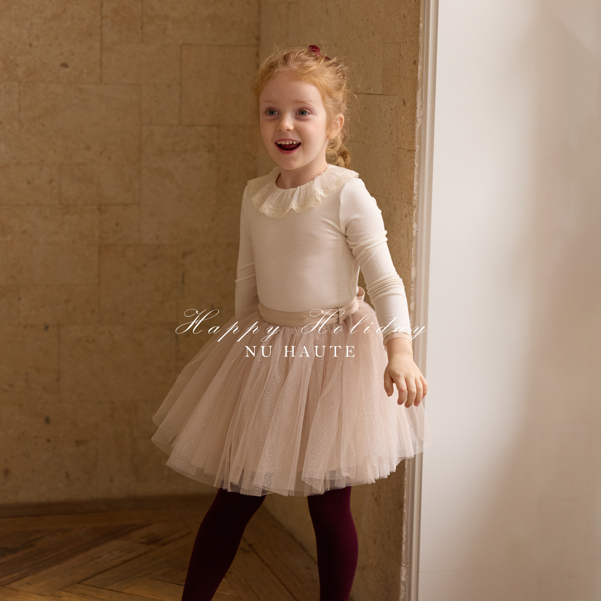 NU童装 春秋节日纯色法式甜美网纱蓬蓬公主裙女童半身裙儿童纱裙