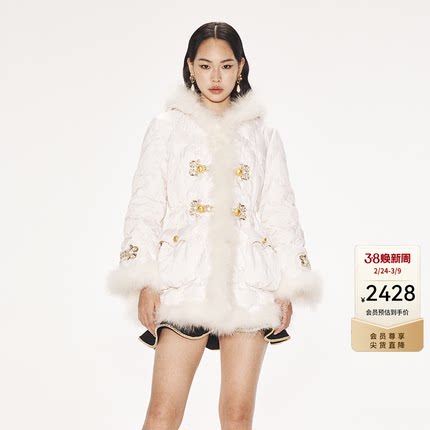 lefame拉飞姆秋冬时尚复古压花绒新中式白金配色羽绒服外套上衣女