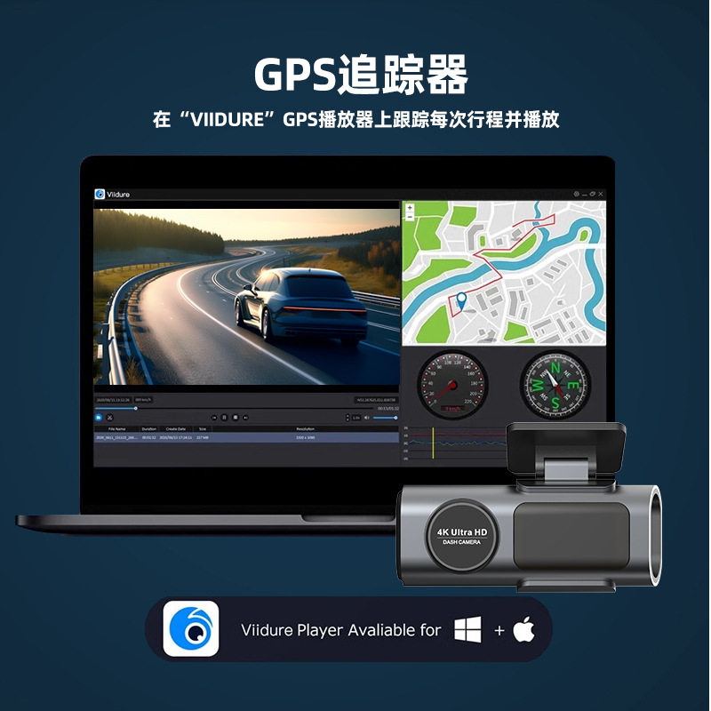 4K行车记录仪清夜视手机互连免走线倒车影像前后双摄监控一体机