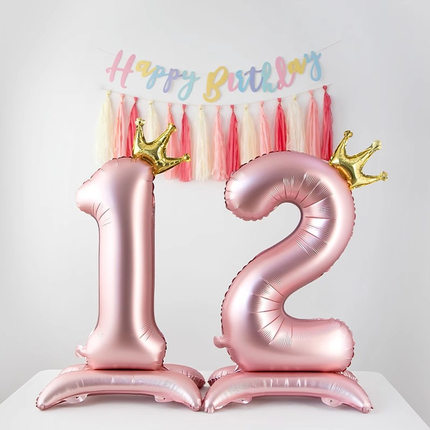 42寸站立皇冠数字铝膜气球粉色儿童成人生日派对布置拍照装饰