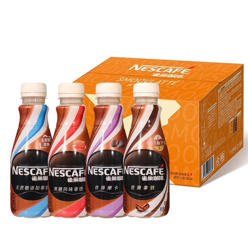 雀巢咖啡瓶装即饮饮料丝滑拿铁摩卡风味混合268ml*15瓶整箱装