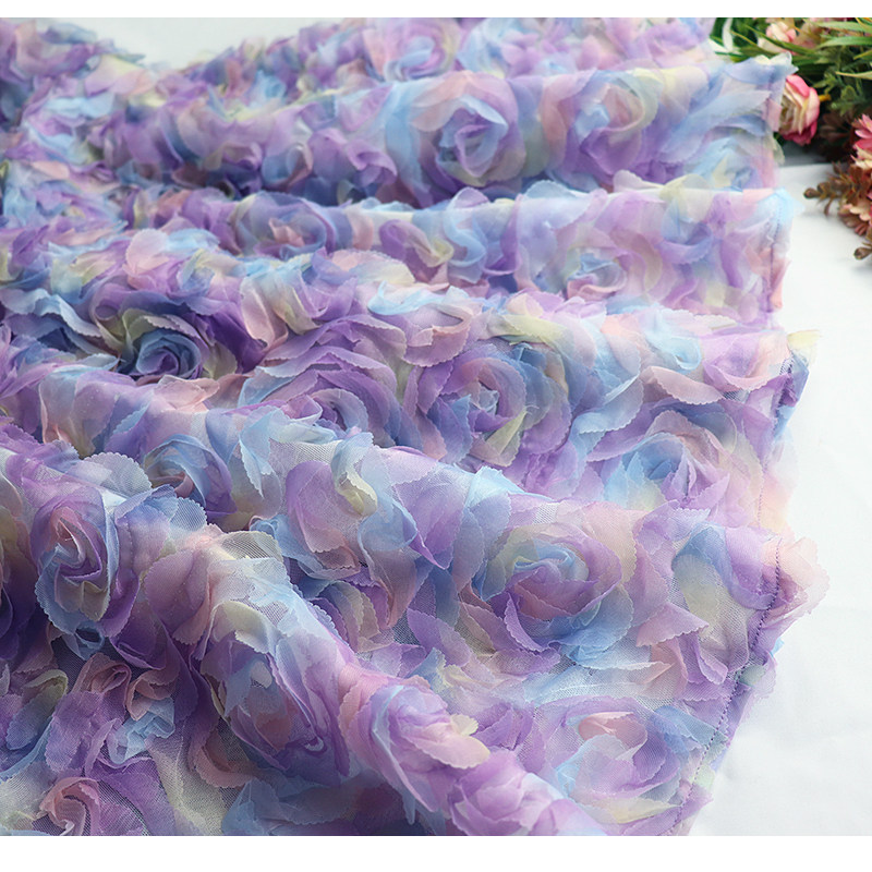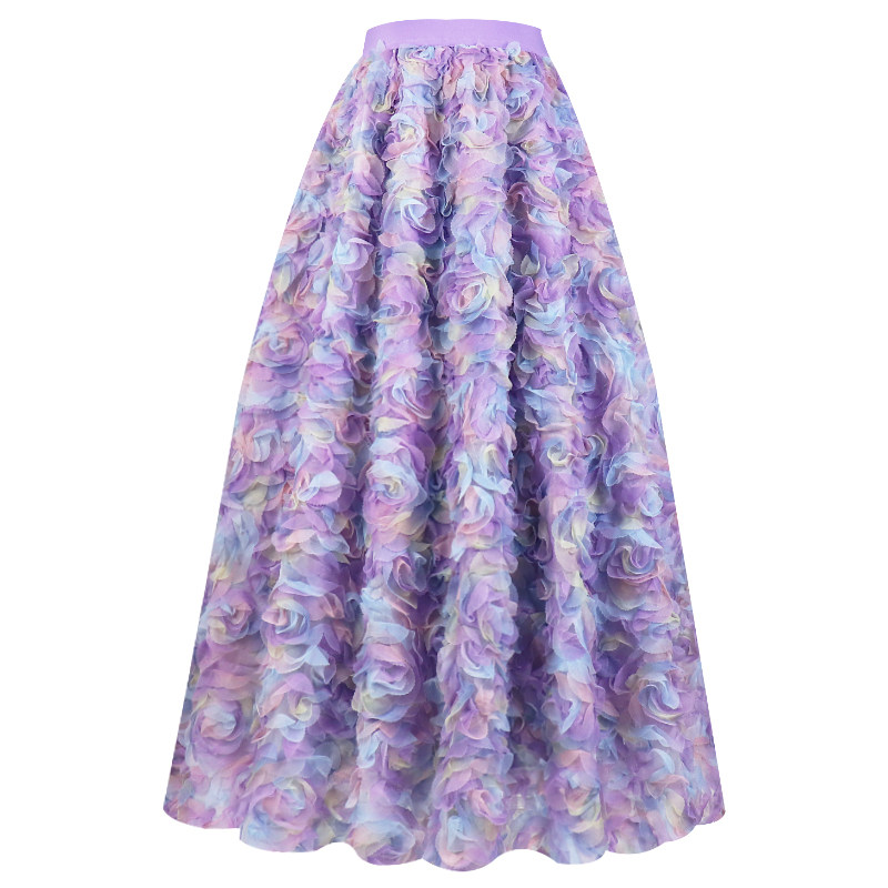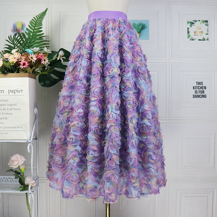 2025春夏新款渐变彩色玫瑰立体绣花网纱裙超浪漫气质仙女半身长裙