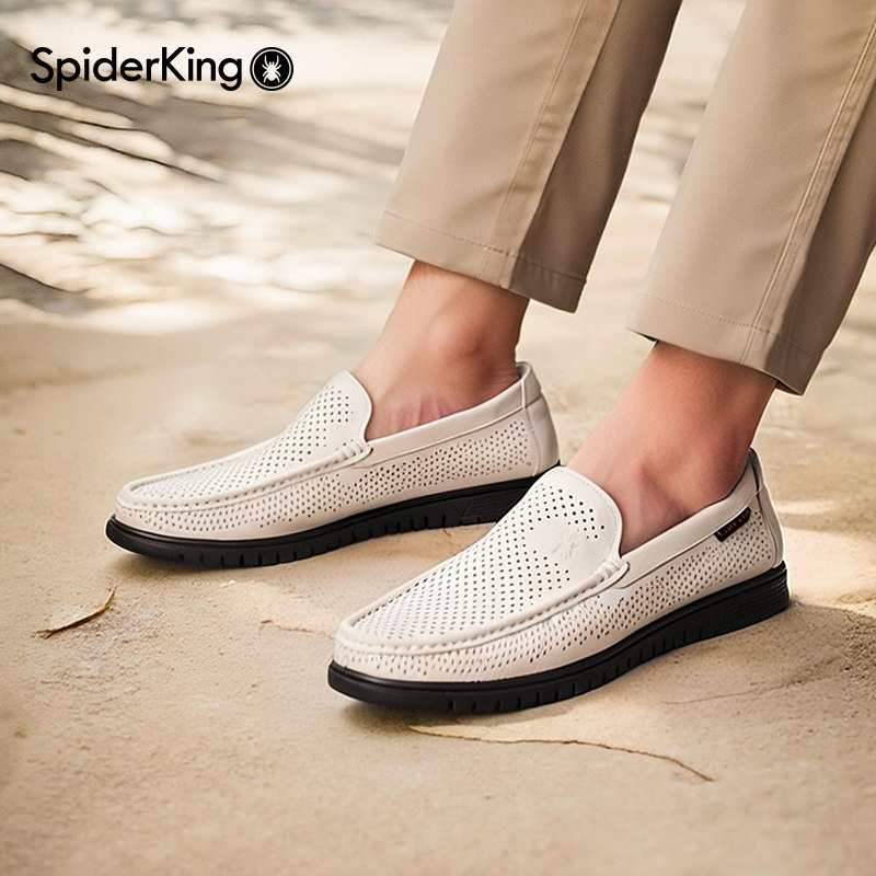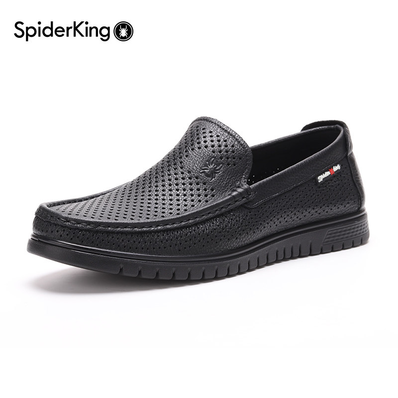 蜘蛛王男鞋春夏2025新款真皮镂空商务休闲皮鞋软底透气豆豆鞋凉鞋
