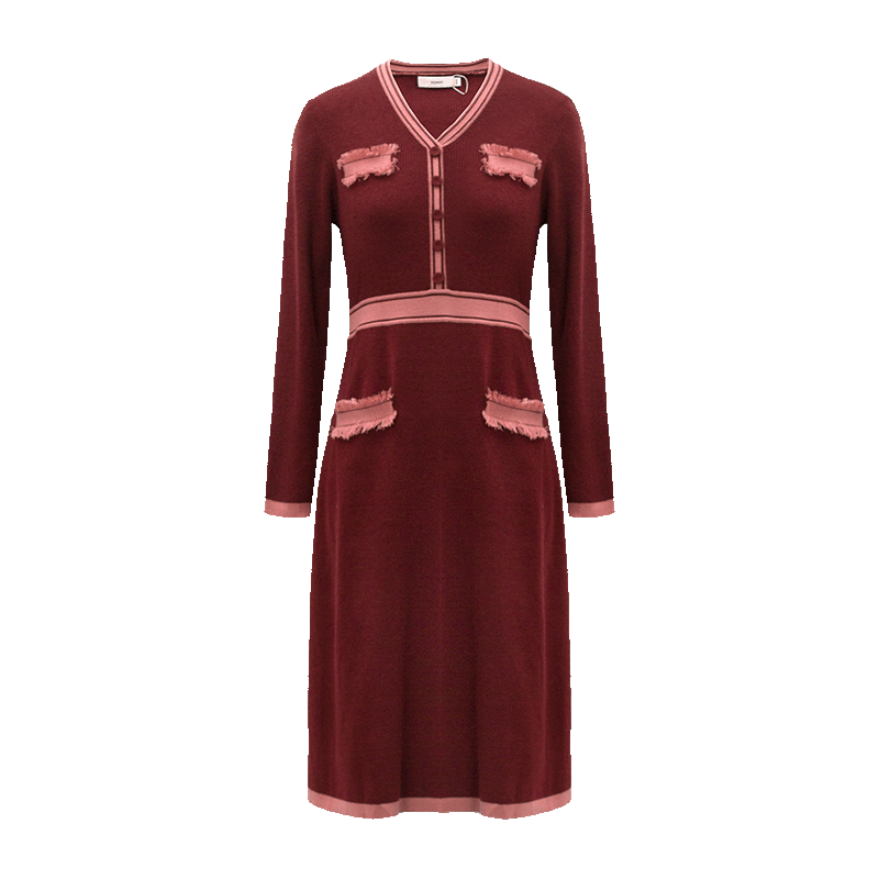 HONRN/红人春秋季红色长袖遮肚子减龄显瘦针织连衣裙女HH11OL623