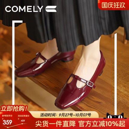 康莉真皮玛丽珍鞋女25年春季新款方头粗跟复古时尚一字扣高跟皮鞋