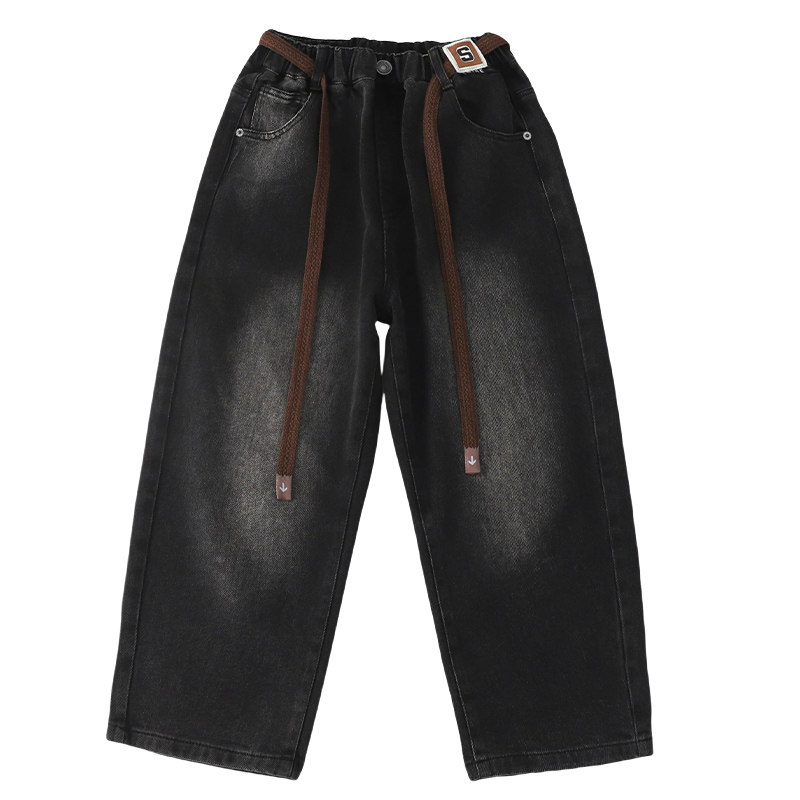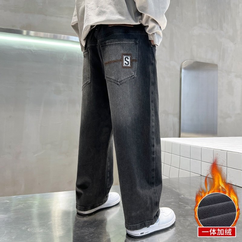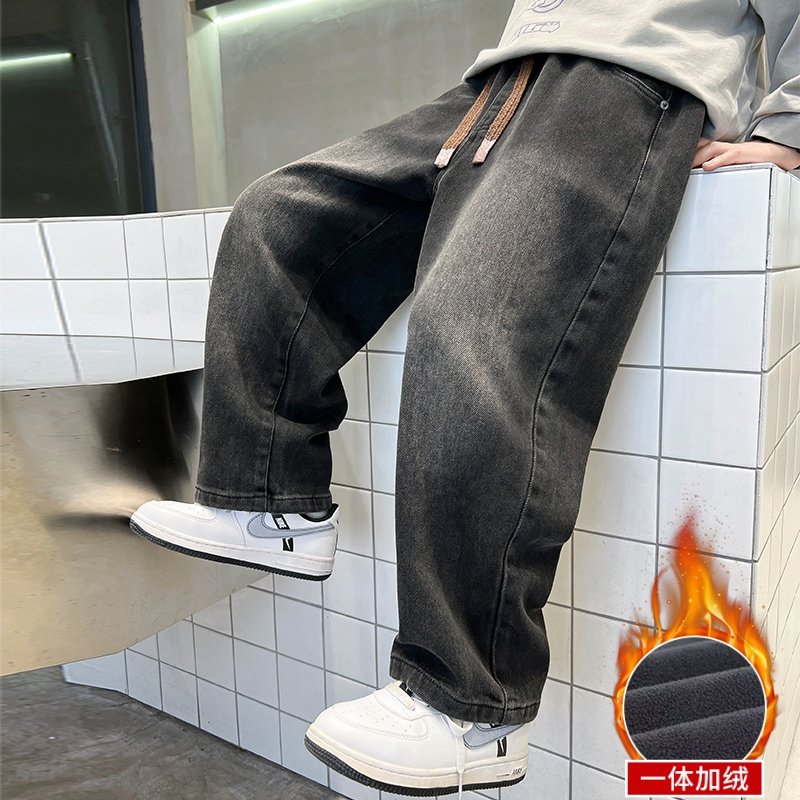 冬款男童牛仔裤加绒长裤2025新款儿童中大童宽松长裤帅男孩裤子帅