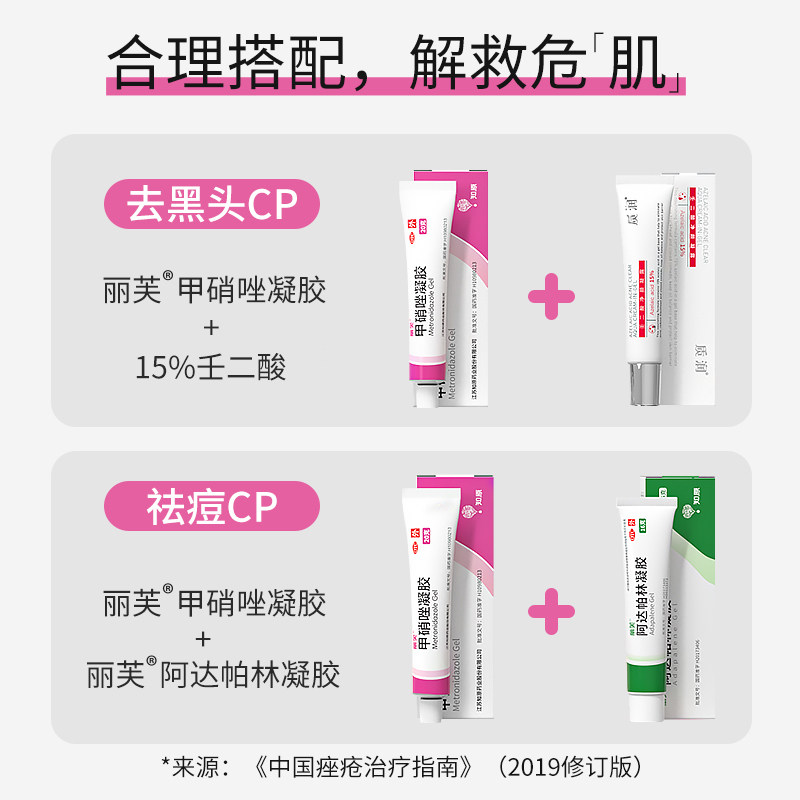 丽芙甲硝唑凝胶知原丽芙祛痘淡印去黑头正品壬二酸消痘组合装