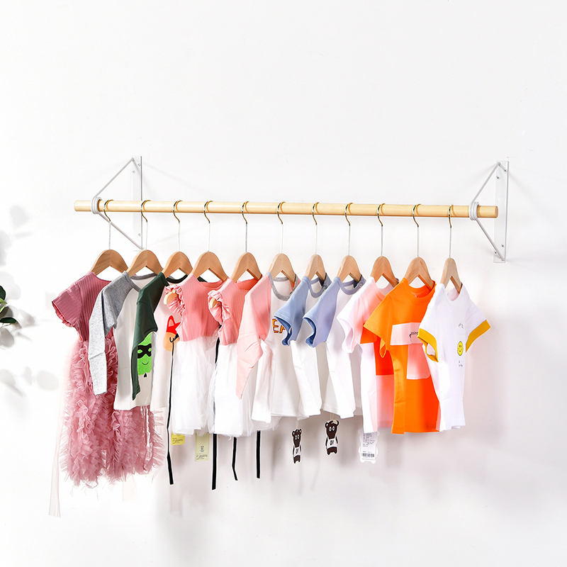服装店展示架货架上墙挂衣杆童装女装店展架实木原木正挂侧挂壁挂