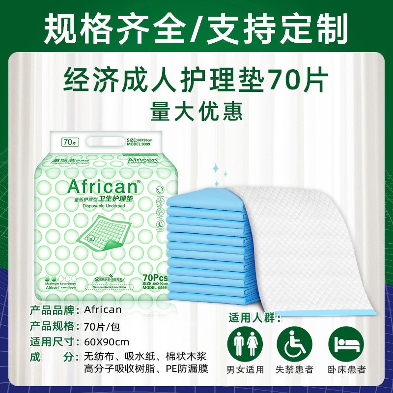 African60x90成人护理垫男女老人尿不湿70片装隔尿垫产孕妇护垫