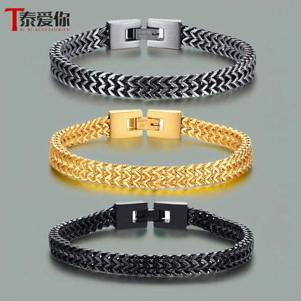 泰爱你时尚帅气个性潮男龙骨链手链气质钛钢简约单身酷炫手饰品