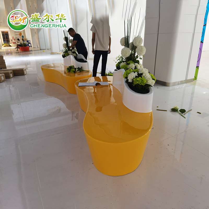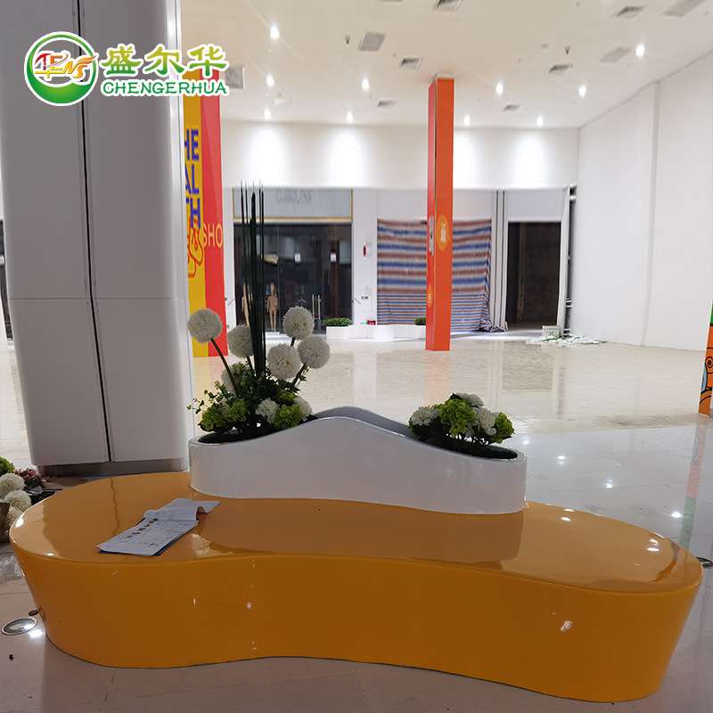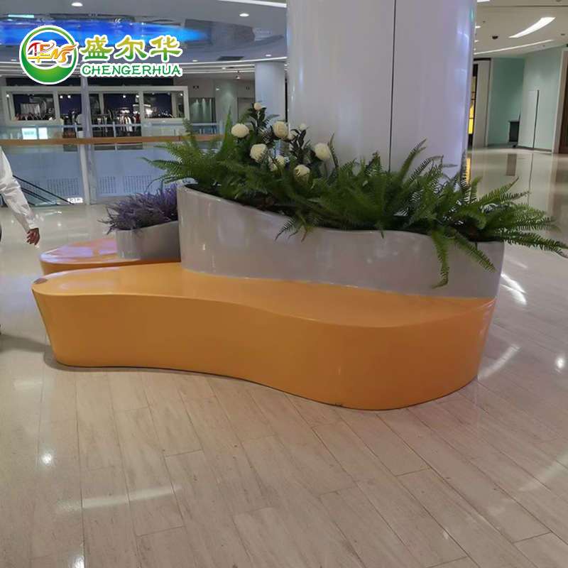 商场美陈玻璃钢花盆组合座椅酒店写字楼接待公共区休息等候椅长椅