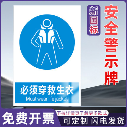 必须穿救生衣 工厂仓库车间消防工地施工安全标识牌警告警示提示标牌标签贴纸KT板铝板反光膜pvc定制做