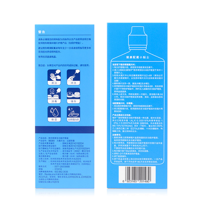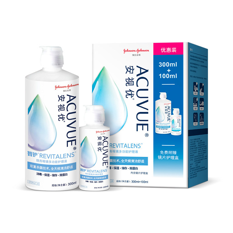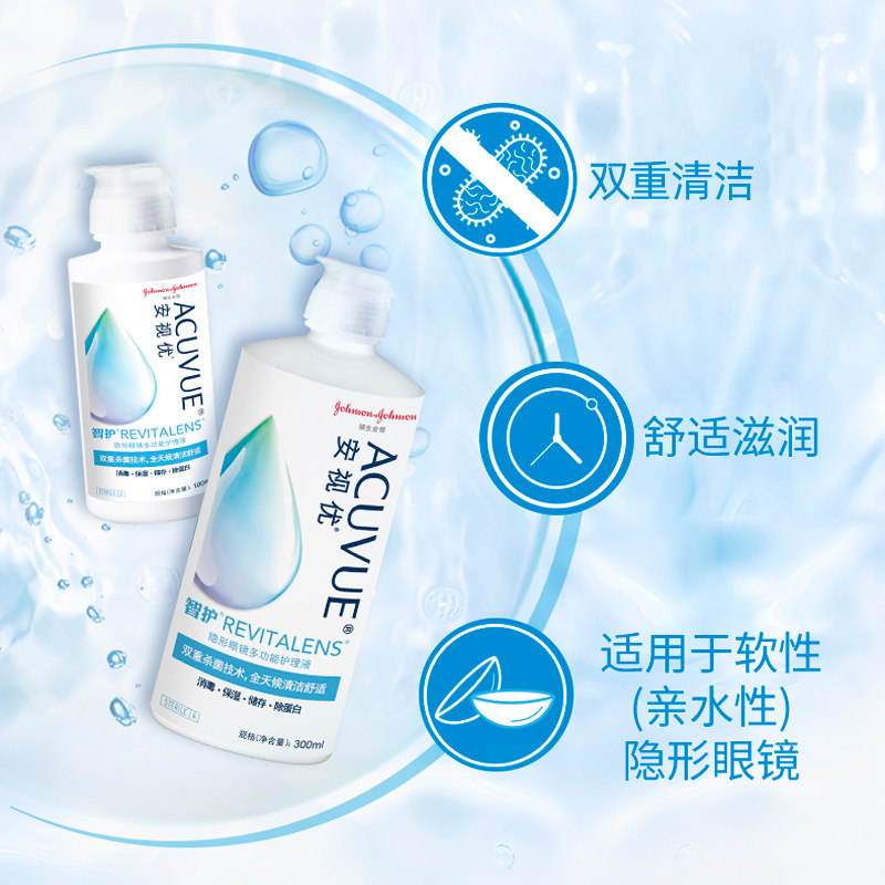 【官旗同款】强生智护隐形眼镜护理液300+100ml美瞳清洗水安视优