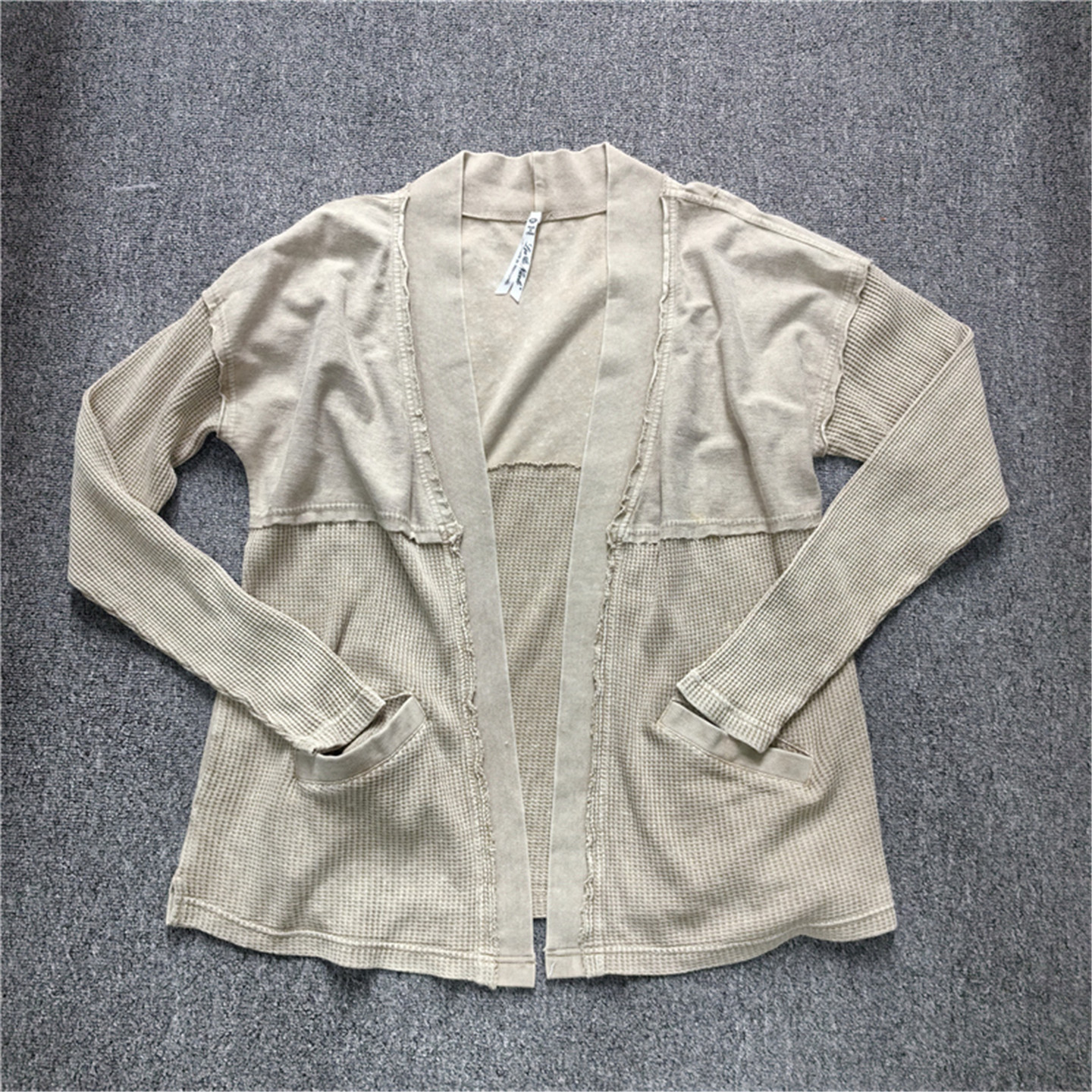欧美外贸大码女装洗水做旧休闲口袋针织开衫春秋复古废土风女外套