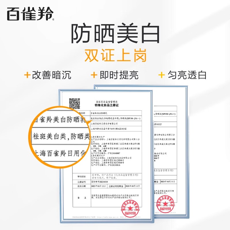 百雀羚防晒霜官方正品旗舰店草本美白隔离防晒乳女面部防紫外线