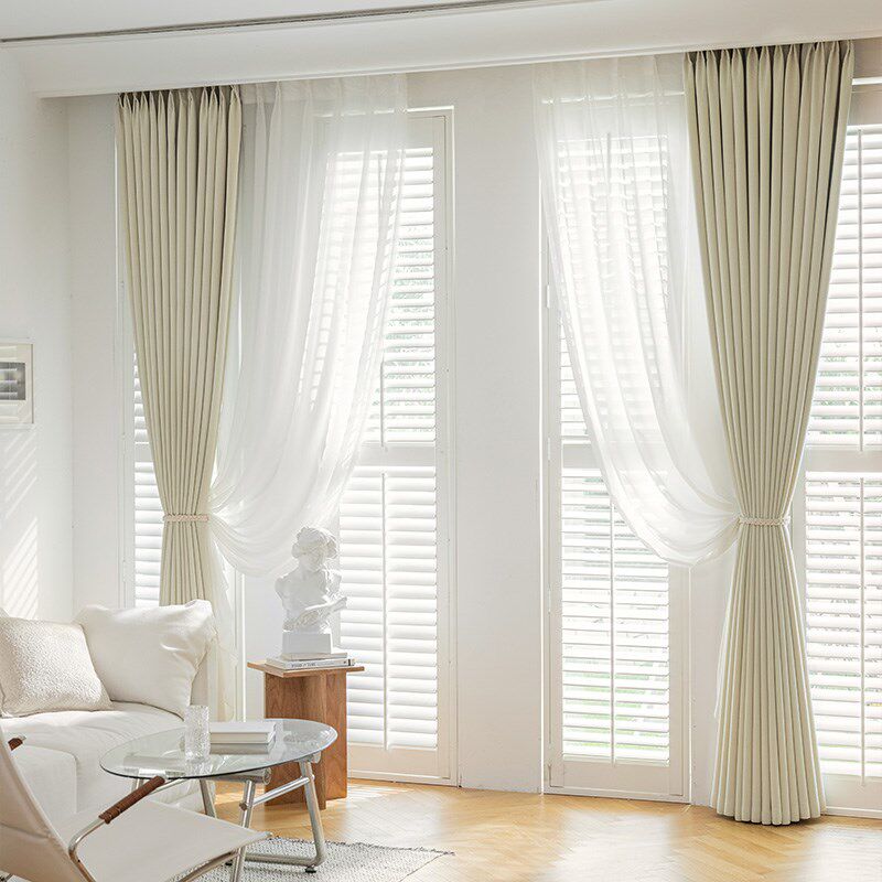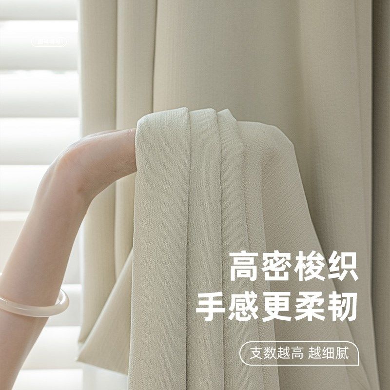 全遮光100不透光奶油风现代简约遮光窗帘成品客厅卧室新款雪尼尔