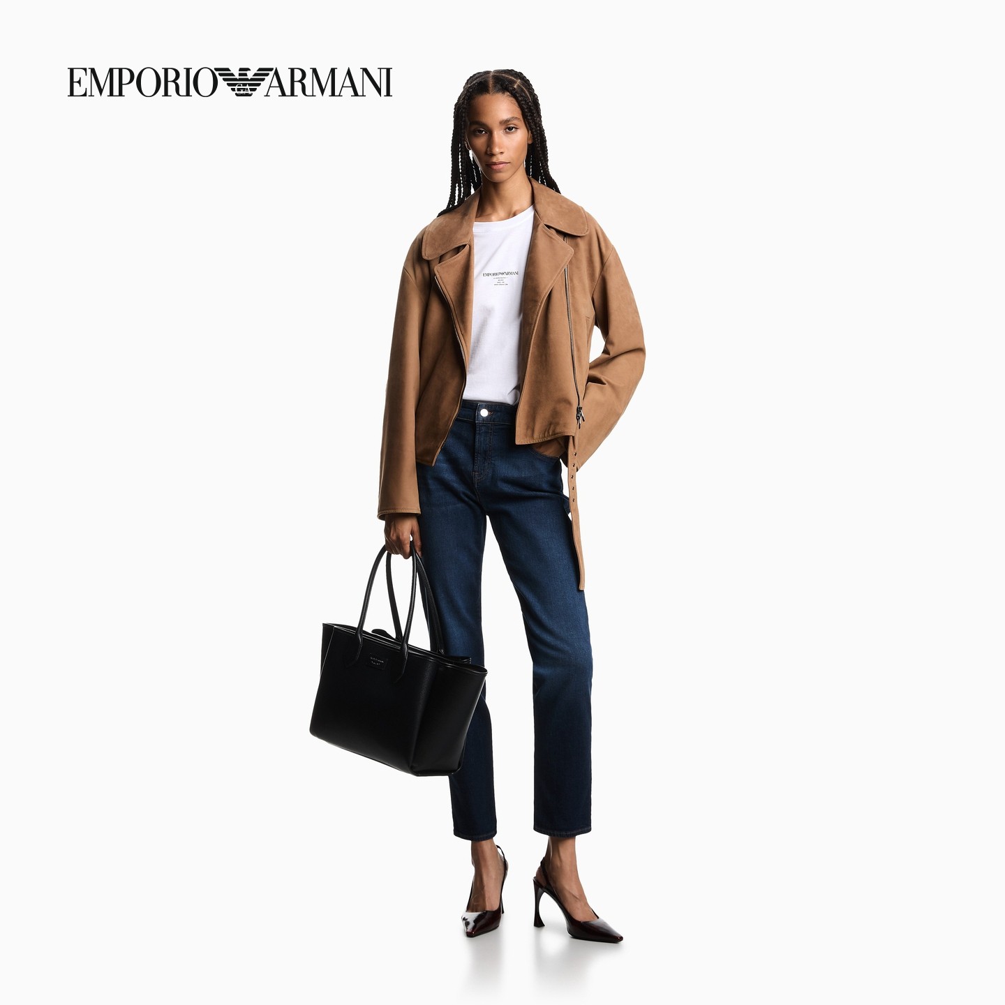 EMPORIO ARMANI/阿玛尼秋冬新款女士修身直筒复古水洗微弹牛仔裤