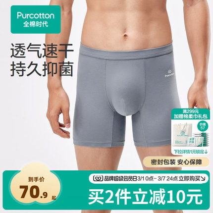 全棉时代纯棉男士内裤抗菌透气男生四角加长短裤速干内裤