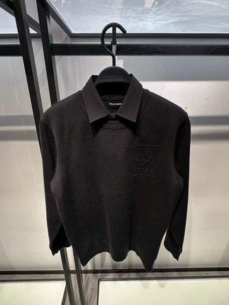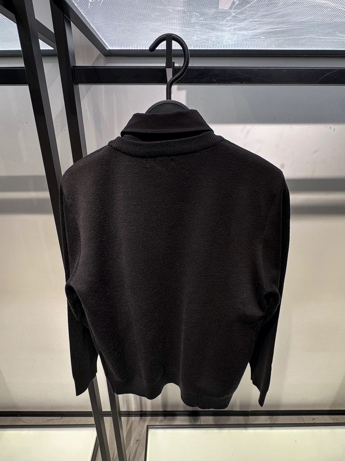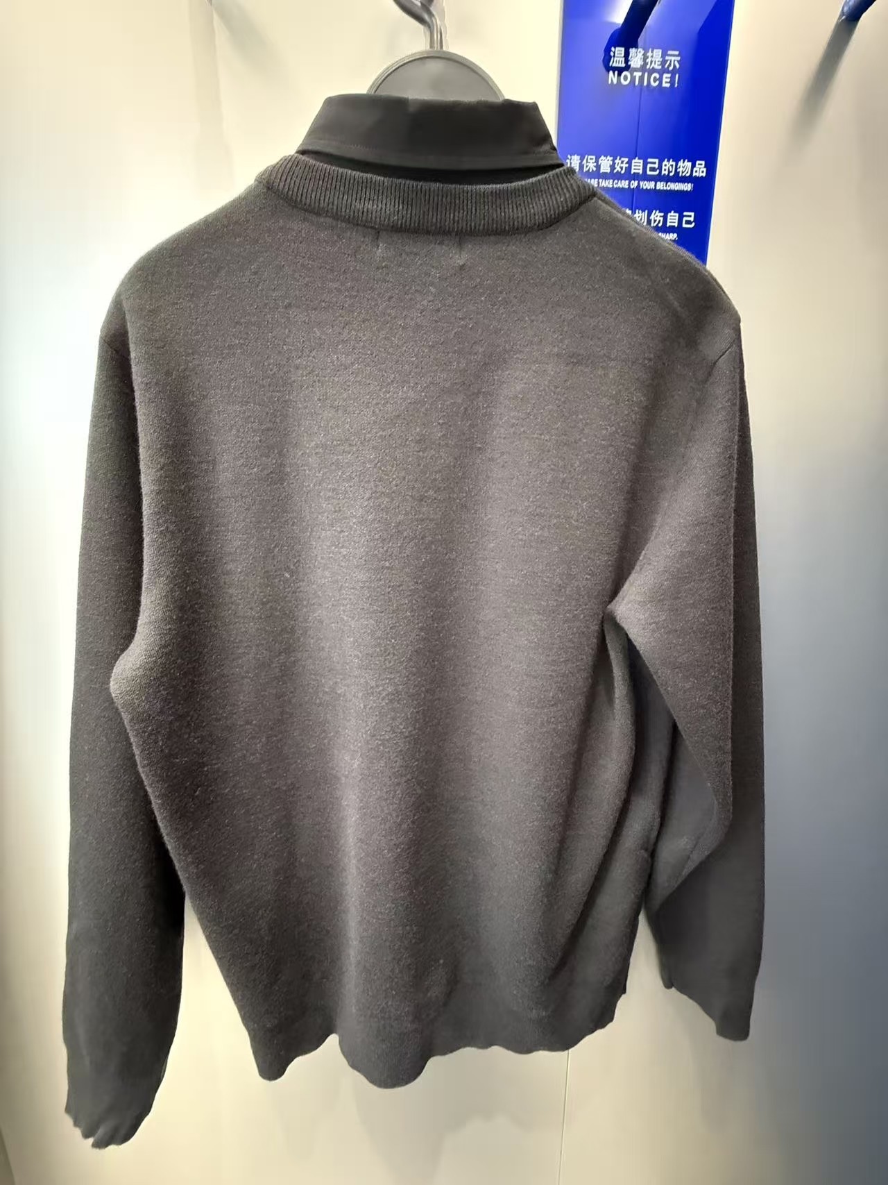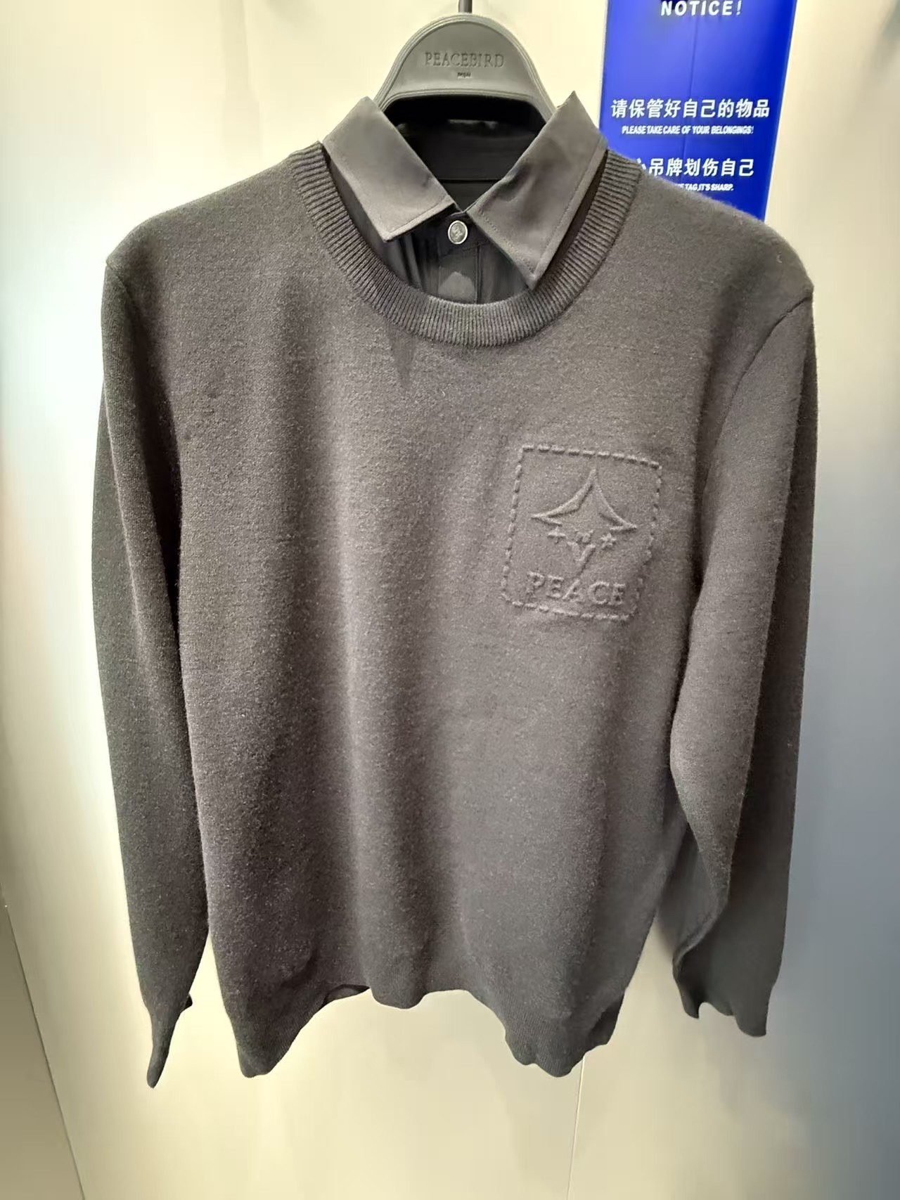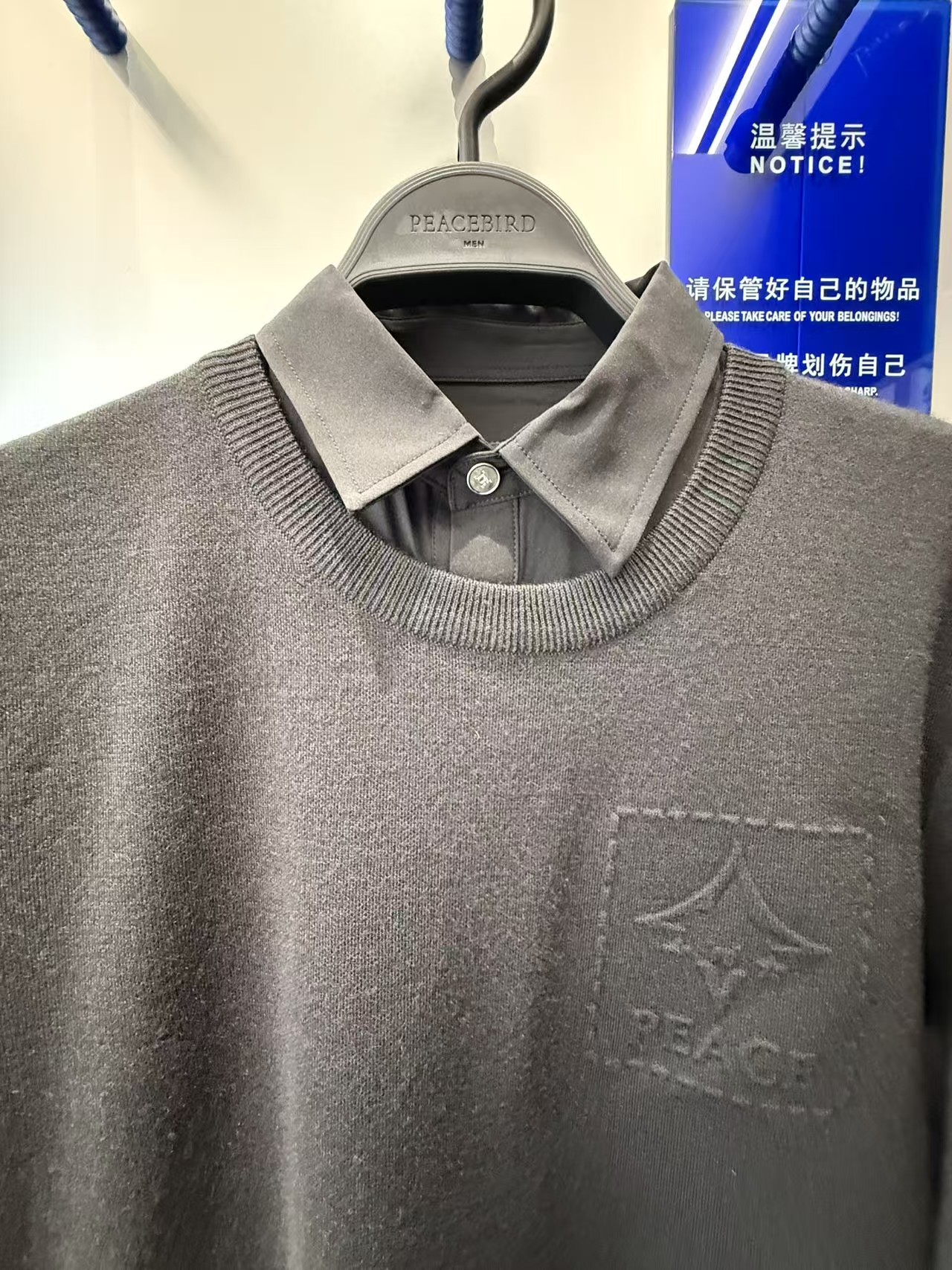 B1EBE4507 太平鸟男装冬季新款黑色百搭商务假两件套头针织毛衣潮