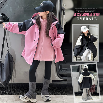 女童冲锋衣2025新款儿童洋气三合一秋冬装大童女孩网红可拆卸外套