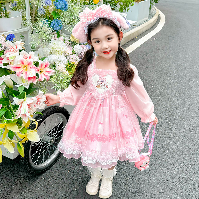 美乐蒂裙子女童莲雾粉连衣裙春秋甜美洛丽塔公主裙儿童长袖裙子潮