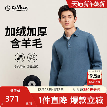 【加绒加厚】金利来秋冬含羊毛长袖T恤保暖商务休闲POLO衫上衣男