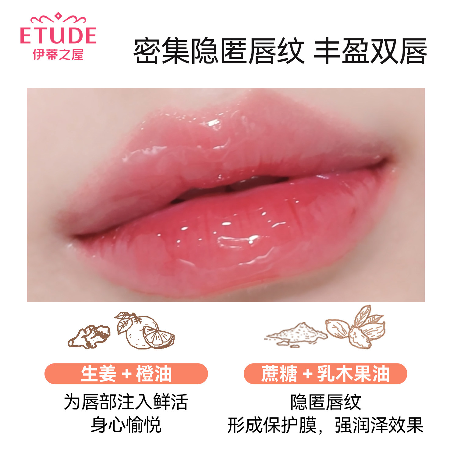 【玻璃水膜感】韩国Etude爱丽小屋姜糖水光唇蜜保湿唇釉持久滋润