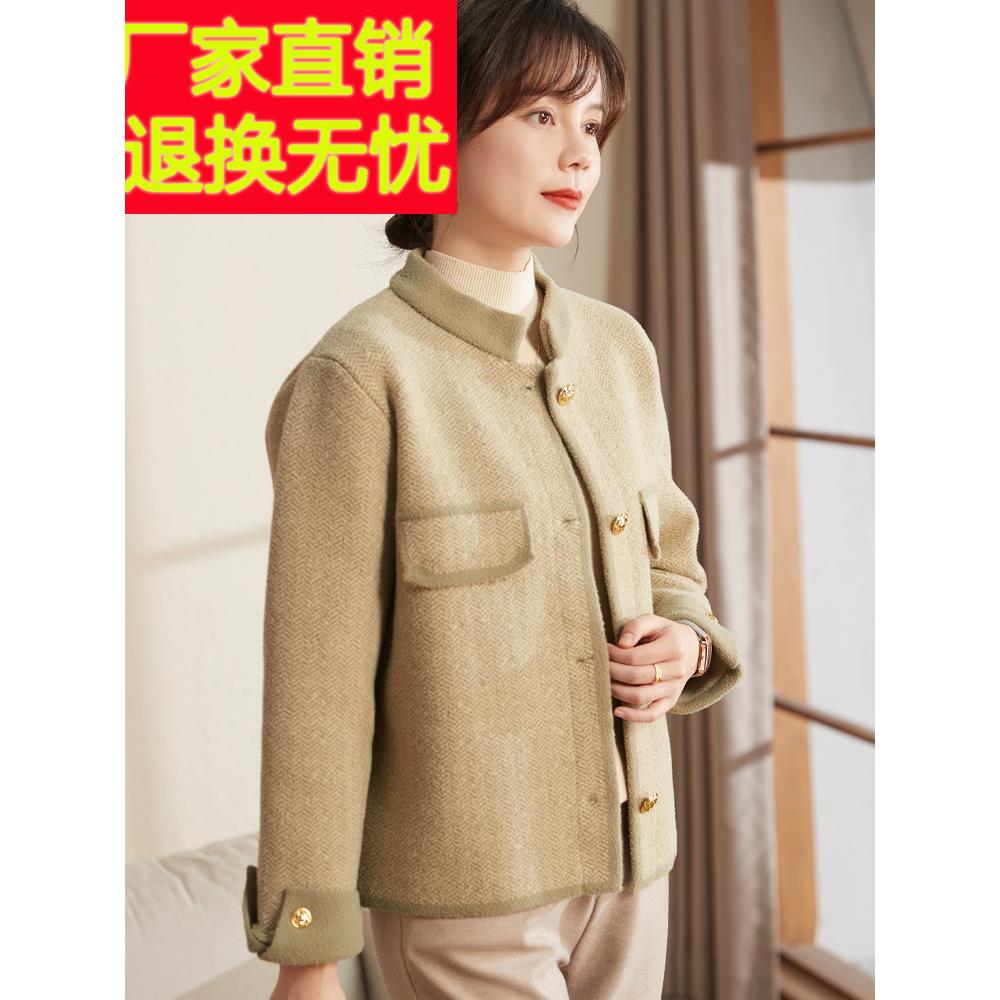 高端妈妈春秋小香风短款外套40岁50中老年女秋装针织开衫立领上衣
