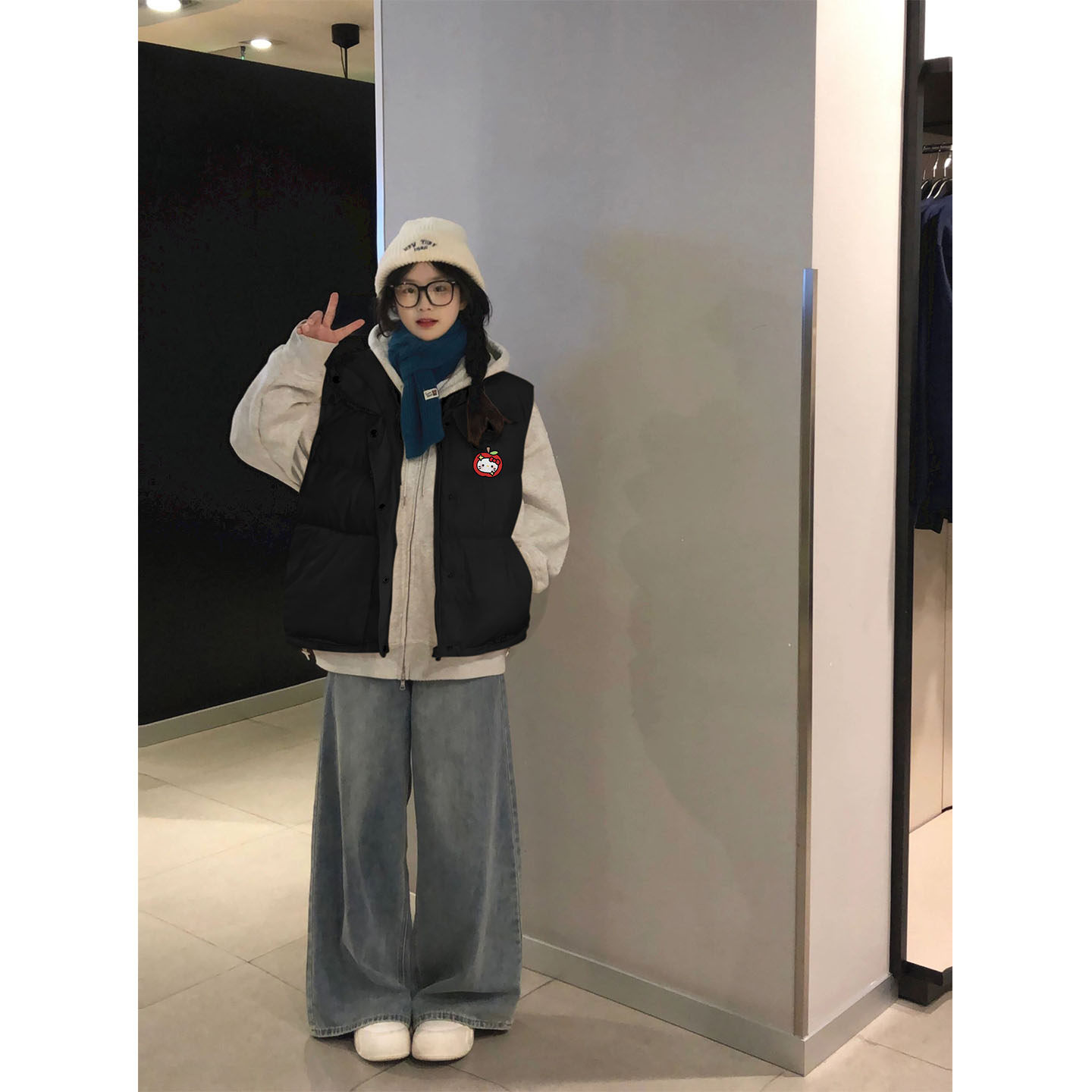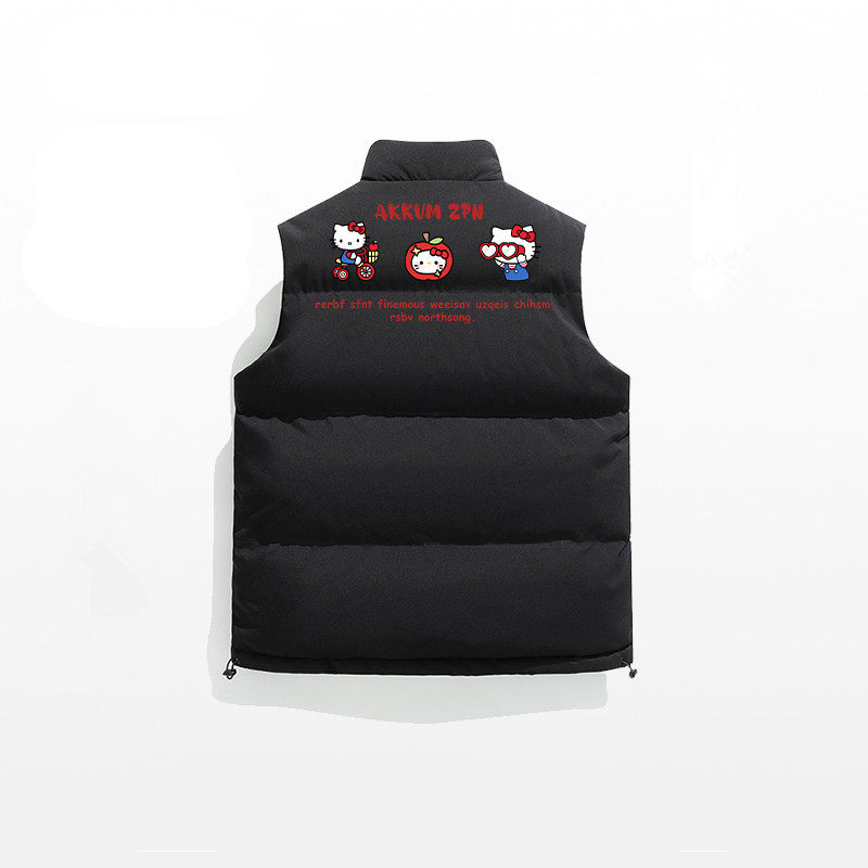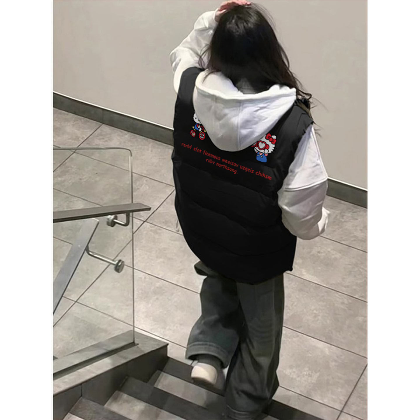 大童可爱kitty猫印花立领羽绒服马甲女冬季初中高中学生加厚外套