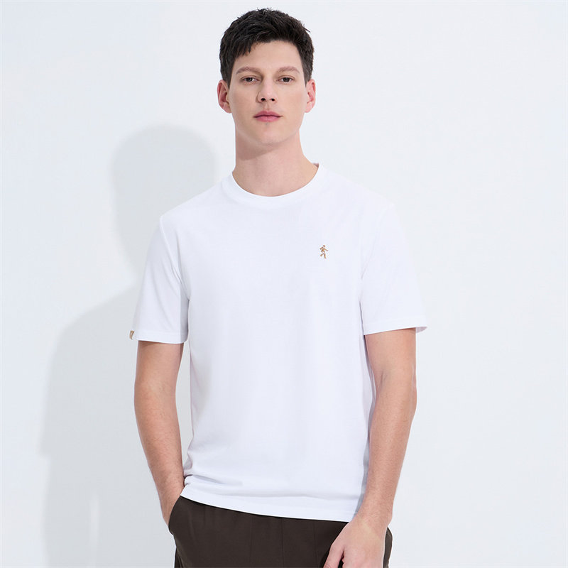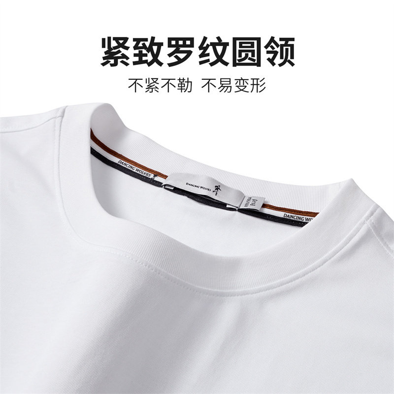 【纯棉100%】与狼共舞圆领短袖T恤男2025夏季新款刺绣透气纯色短T