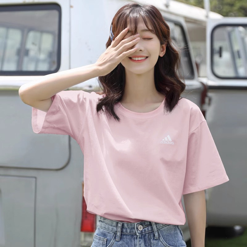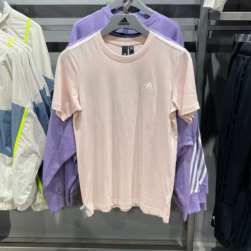 阿迪达斯粉色T恤女夏季新款宽松运动服简约百搭半袖棉短袖IT4338