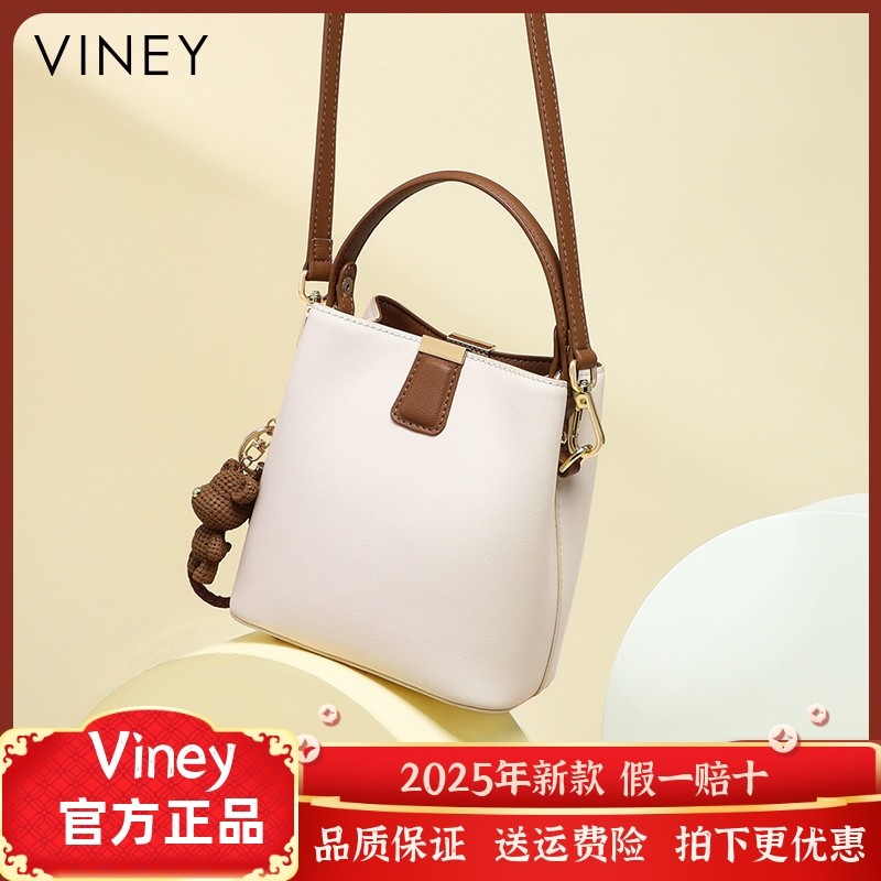 Viney包包百搭新款包包女包斜挎包夏水桶包网红高级感真皮手提包