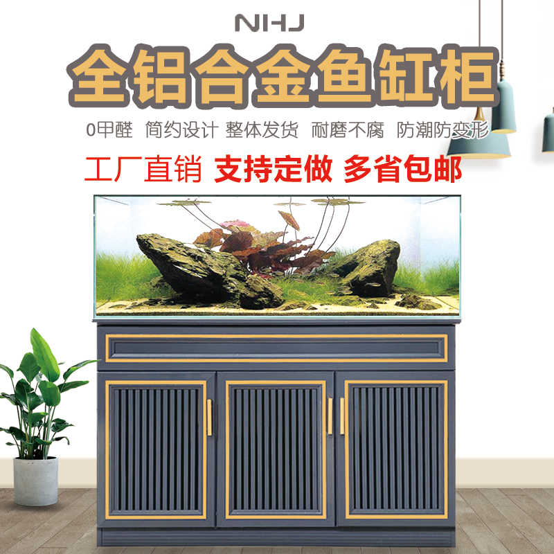 鱼缸底柜铝合金鱼缸柜子轻奢欧式水族箱超白缸底座水草缸地柜定制