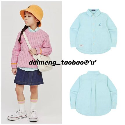 110-155码出口韩秋款男女童中大童翻领浅湖蓝纯色长袖衬衣衬衫