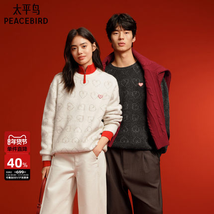 【糯米绒】太平鸟男装 休闲毛衫时尚26春季新款满版爱心宽松毛衣