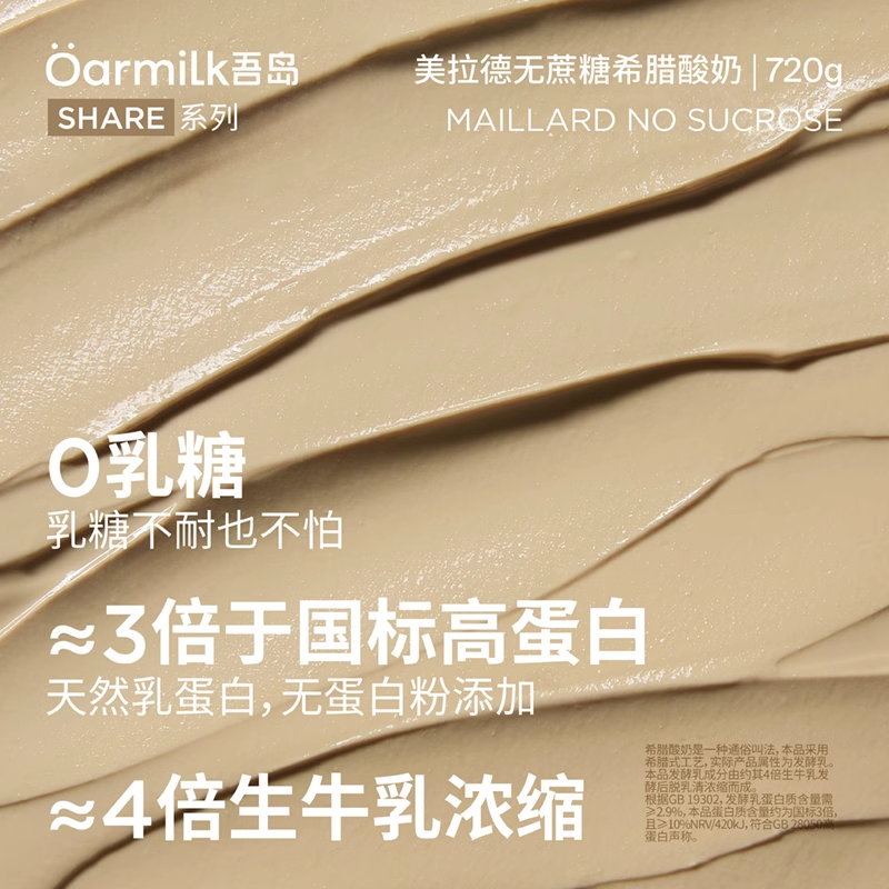 【新品上市】Oarmilk吾岛美拉德无蔗糖希腊酸奶720g低温特浓酸奶