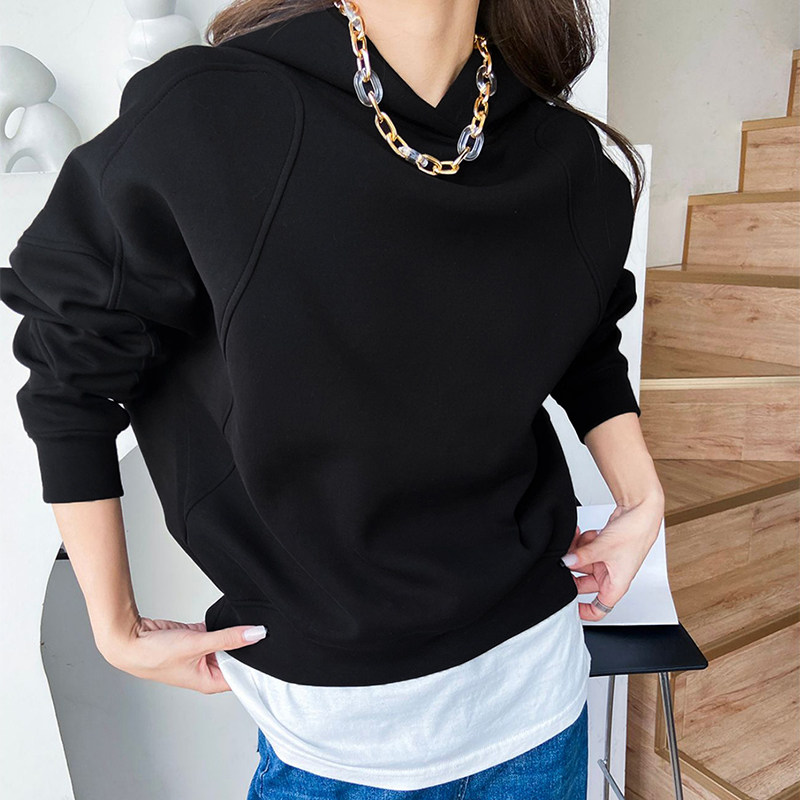 火龙果色短款连帽加绒加厚卫衣女秋冬2025新款套头宽松小个子上衣