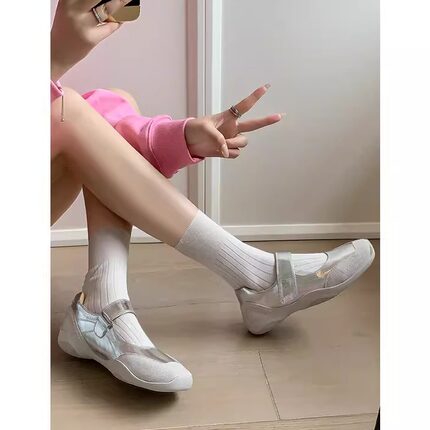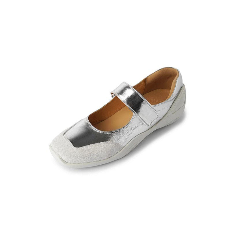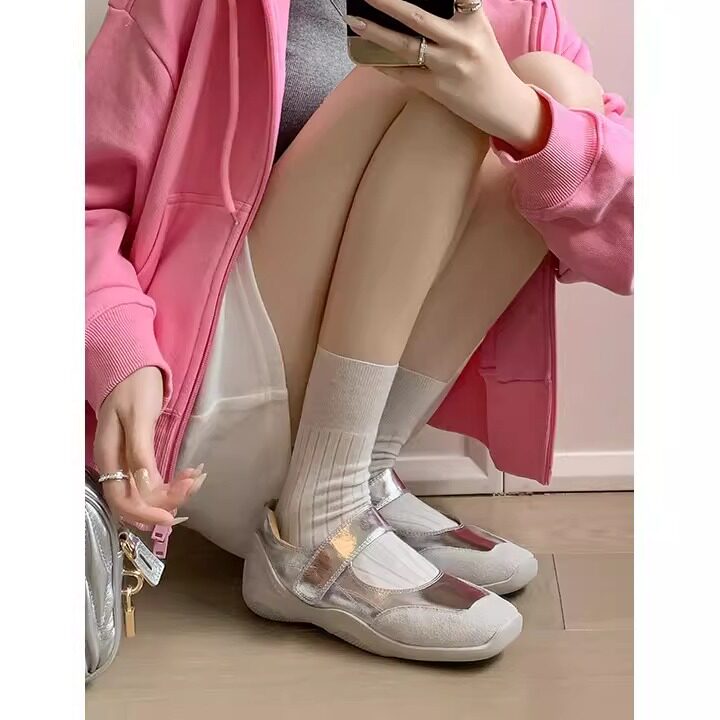 真皮法式内增高小银鞋休闲运动芭蕾鞋绝美软底魔术贴玛丽珍单鞋女
