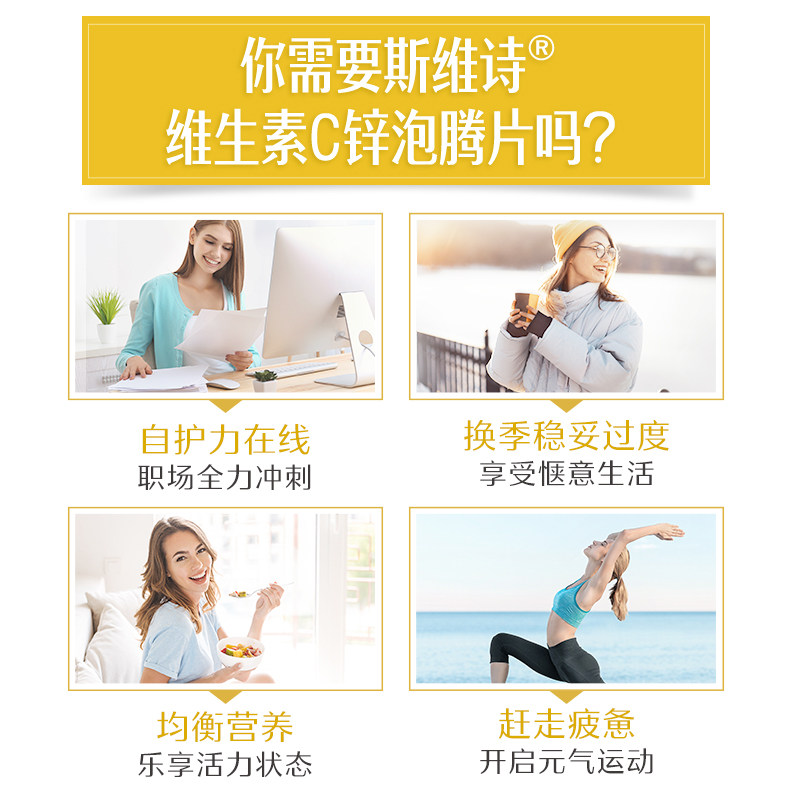 Swisse斯维诗维生素C锌泡腾片提升自护力增强抵抗力清新草莓味