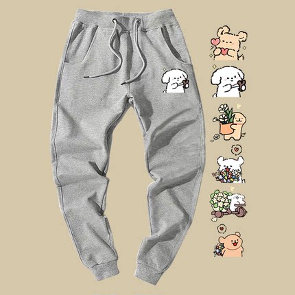 马尔济斯线条小狗联名周边青少年男女情侣同款定制束口卫裤子长裤