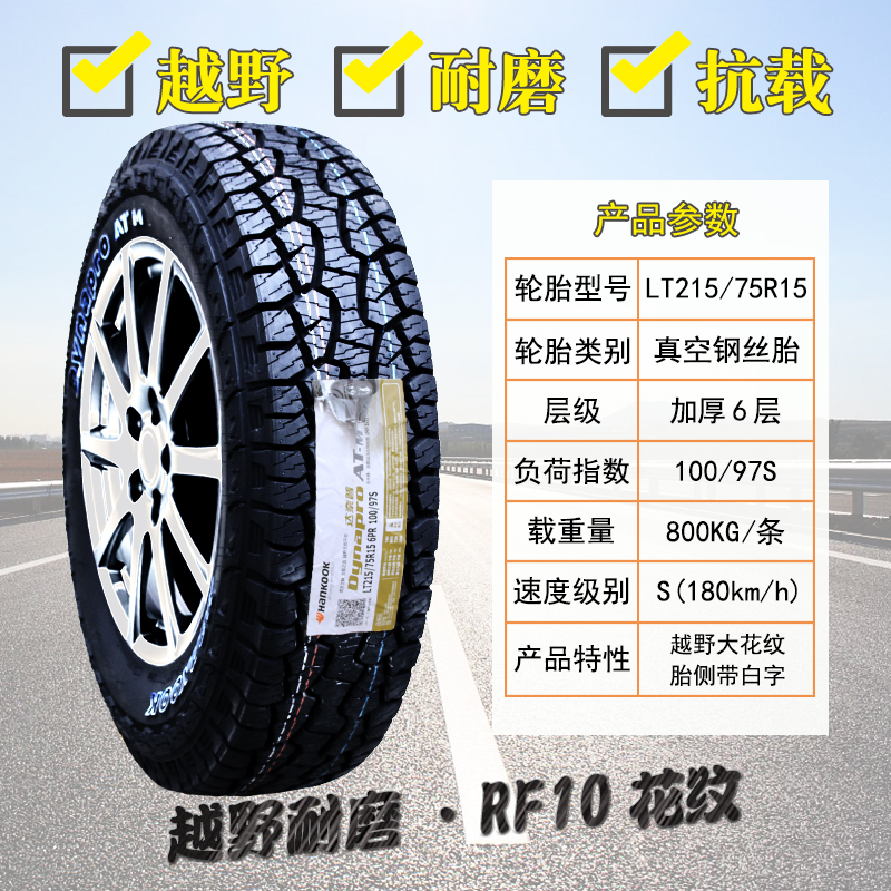 韩泰轮胎215/75R15 RF10 AT越野 长城皮卡风骏5江铃宝典 21575r15