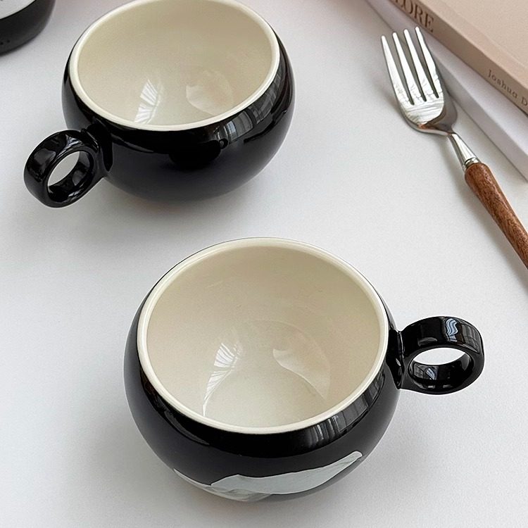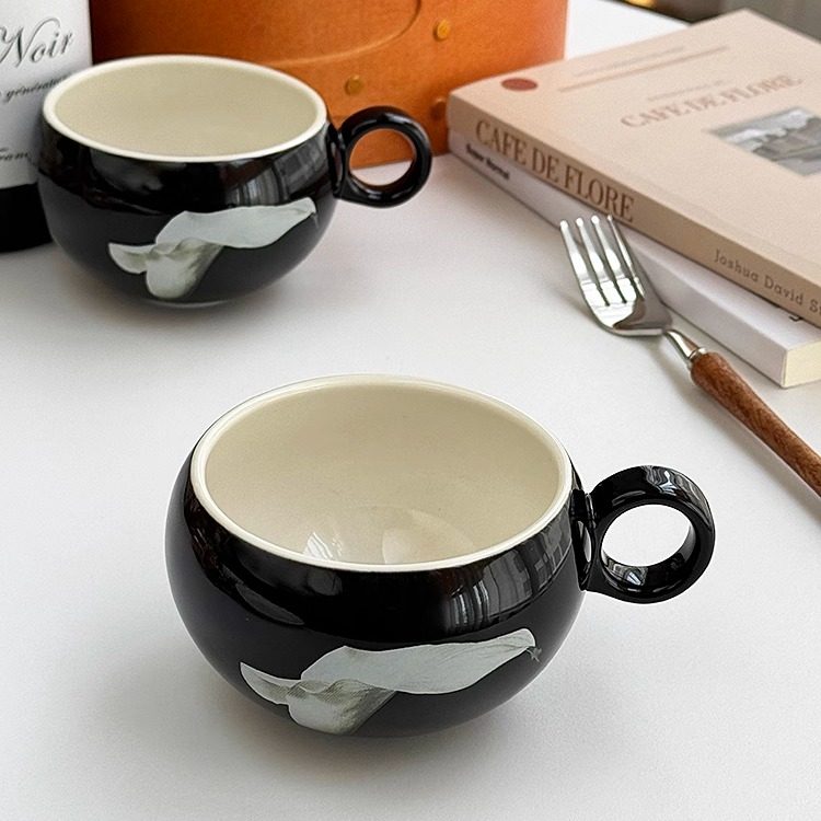安木良品 大厂订单 北欧ins轻奢高级感花卉蛋形陶瓷下午茶咖啡杯