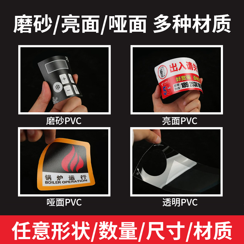 透明pvc磨砂塑片不干胶定制二维码警示标防水桌贴3M标签印刷定做