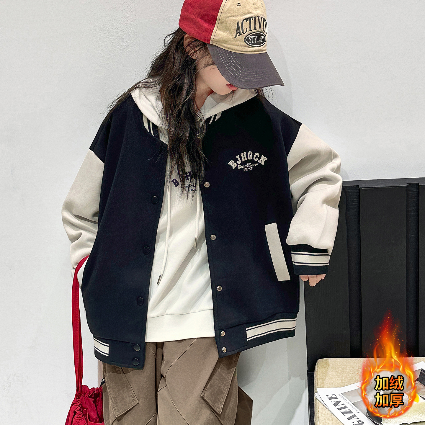 女童秋冬款加绒加厚外套棒球服潮