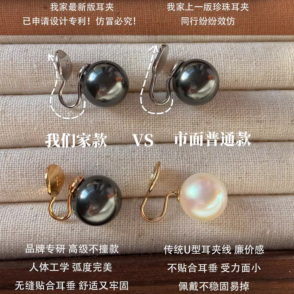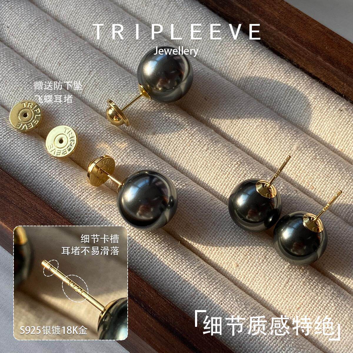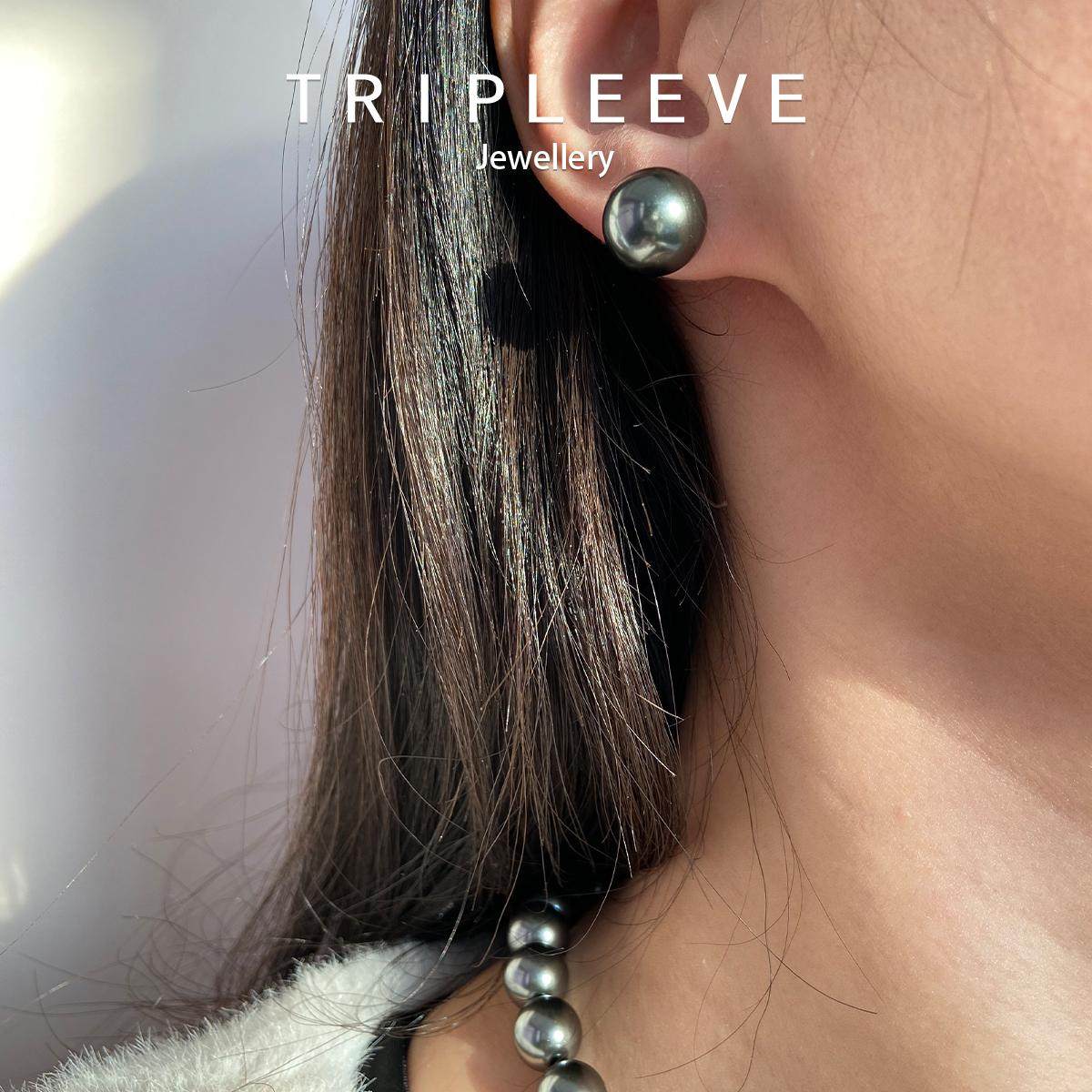 特油亮!大溪地黑珍珠耳钉无耳洞蚊香盘耳夹拉贡明星同款耳环耳饰