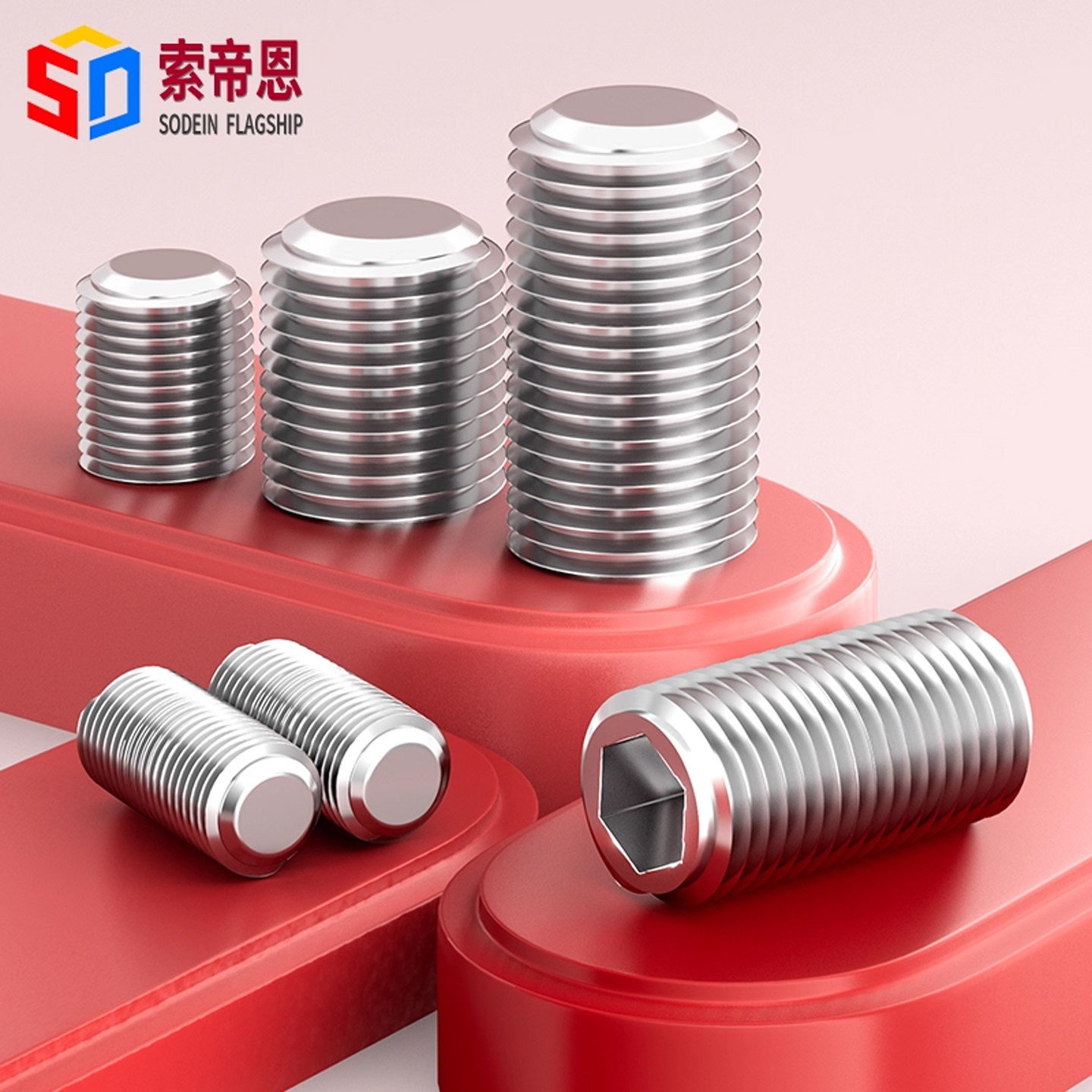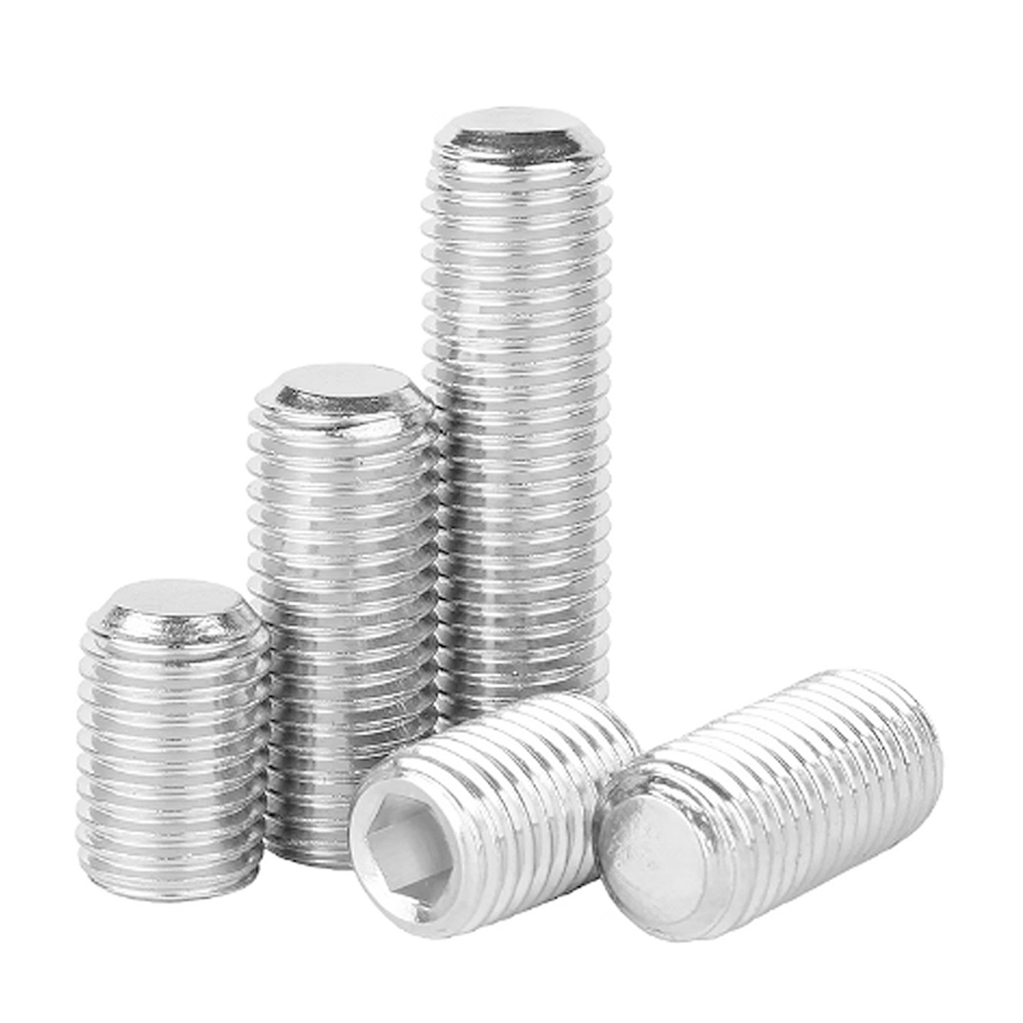 304不锈钢细牙内六角平端紧定螺丝无头平头机米顶丝止付螺钉大全
