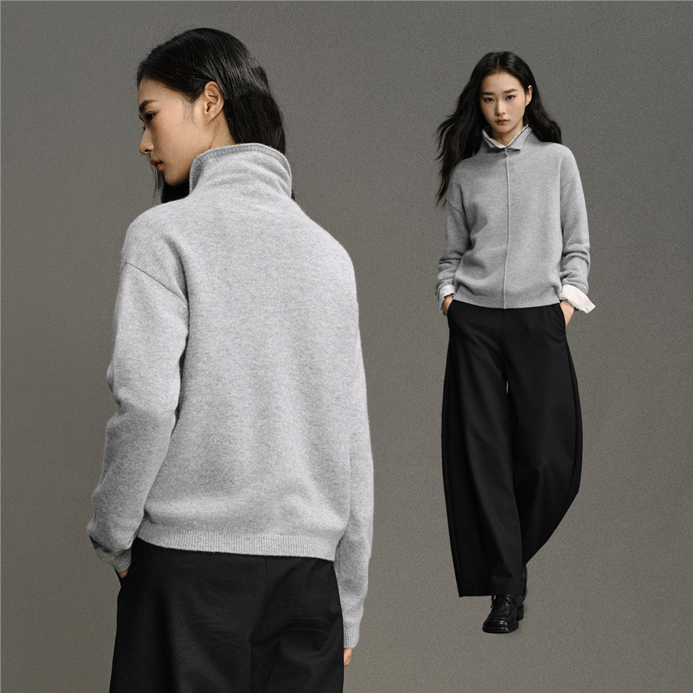 GC2025秋冬新款针织衫女静奢羊毛衫品牌刺绣宽松高领毛衣12355605