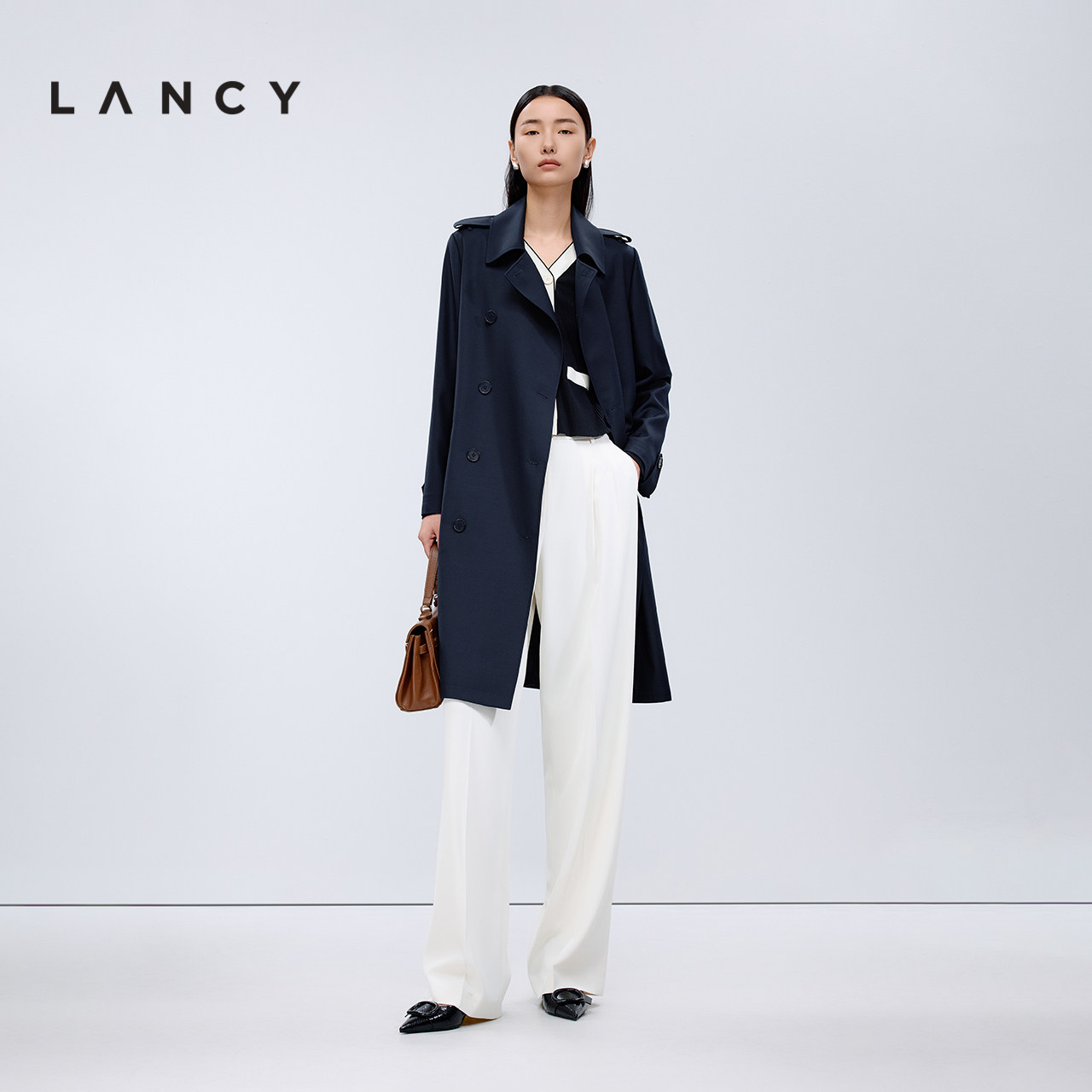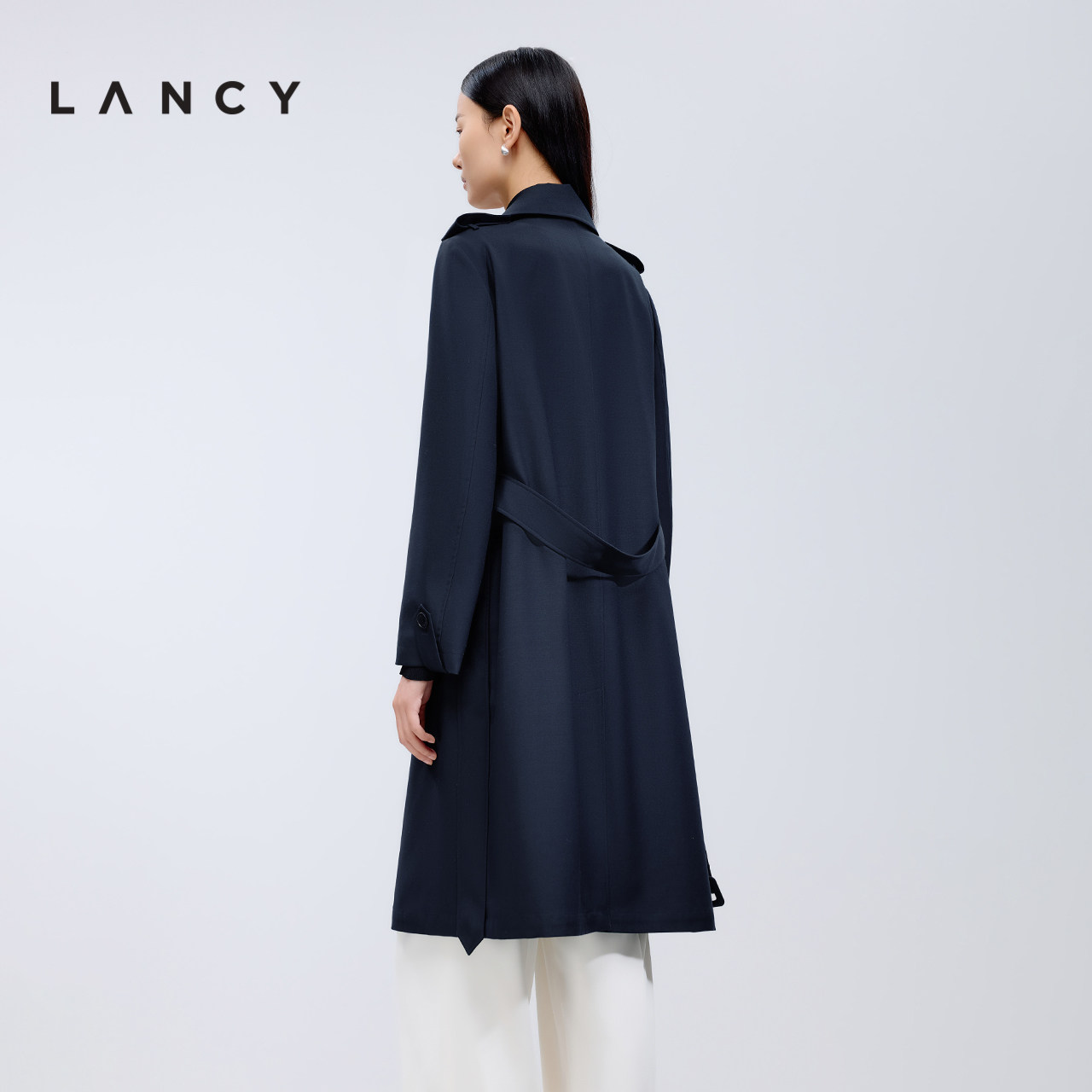 LANCY/朗姿2025秋新款高级简约通勤羊毛风衣大衣女气质中长款外套