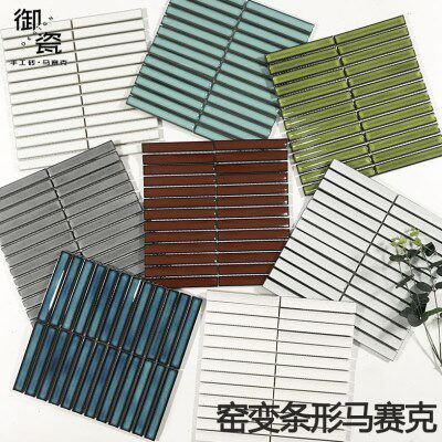 长条背景墙白色简约墙砖厨房卫生间窑变北欧形马赛克瓷砖餐厅浴室