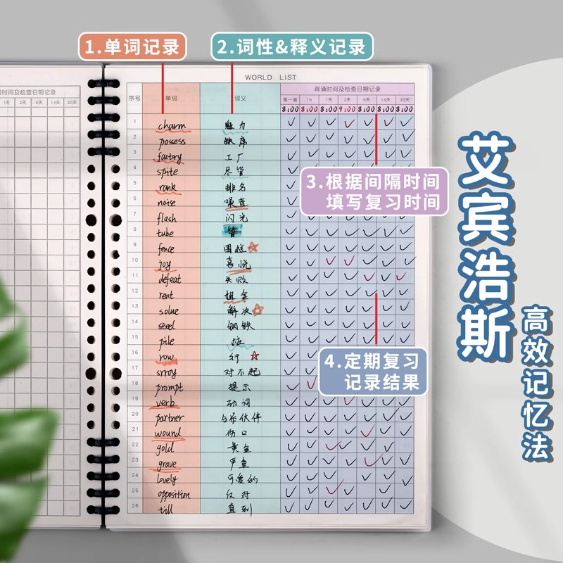 活页英语单词本艾宾浩斯高初中生专用3500艾兵浩斯遗忘曲线四六级雅思考研记忆本背英文日韩德语专升本小学生
